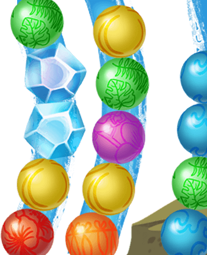 Frozen marble: to destroy it you need to hit it with the exact color in order to break the ice. Deep frozen balls must be shot two or more times to remove the ice!